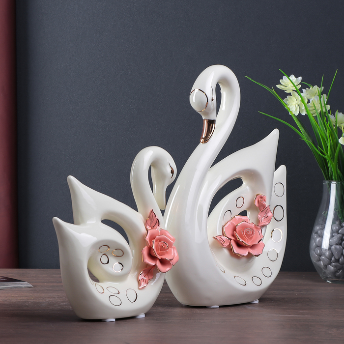 Задумываетесь о том, как поздравить знакомую пару в день свадьбы или ее годовщины? Такой сувенир не только не останется без внимания, но изо дня в день, украшая собой уютный дом, будет напоминать его хозяевам о том радостном дне, когда был вручен, и о человеке, который его подарил. Фигурки обращенных друг к другу белоснежных лебедей, украшенных пышными нежными розами, не только привнесут в окружающее пространство чистые и светлые краски, но и станут символом супружеской любви и верности.