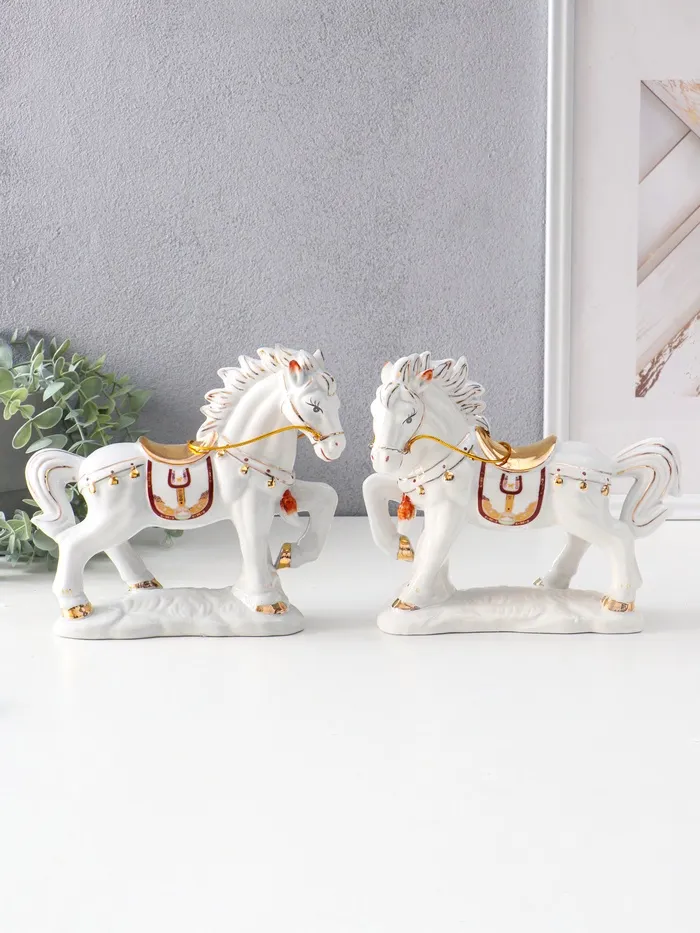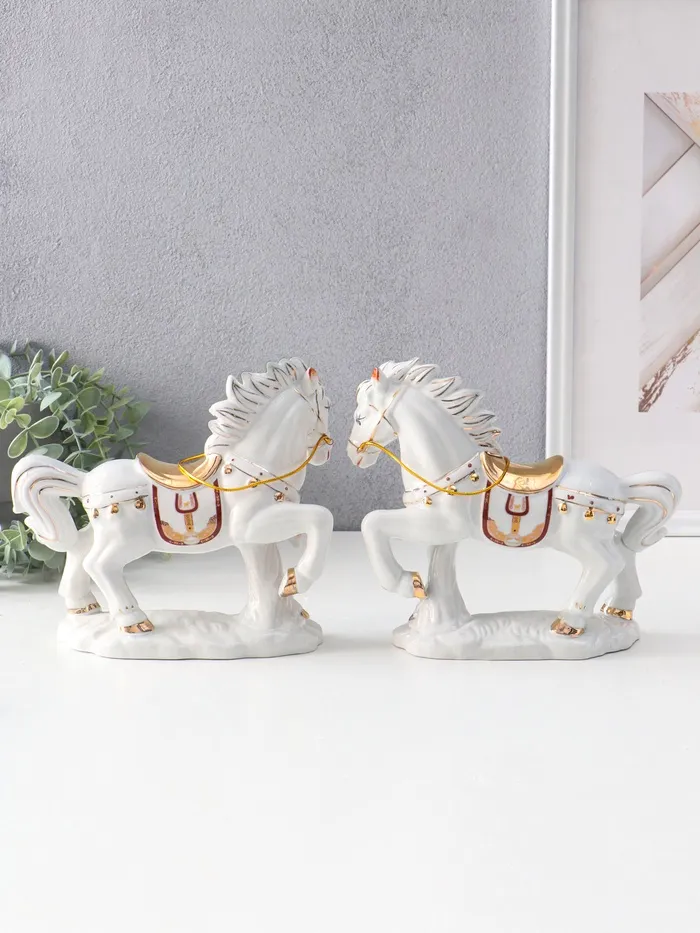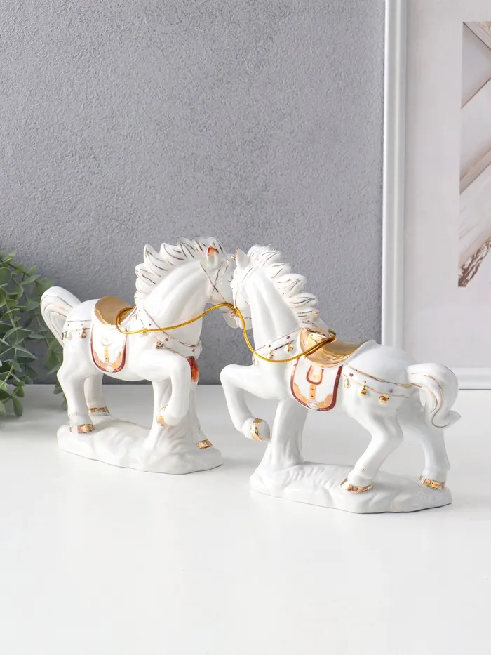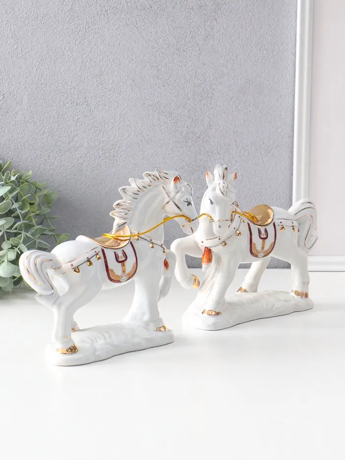 Набор фигурок керамика «Богатырские кони», бело-золотой, 2 шт., 22×7.7×19 см — Характеристики