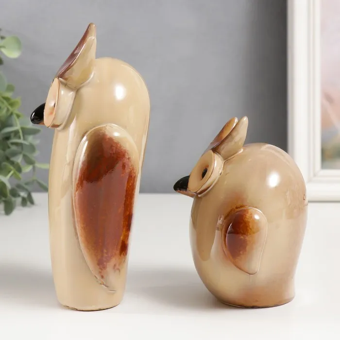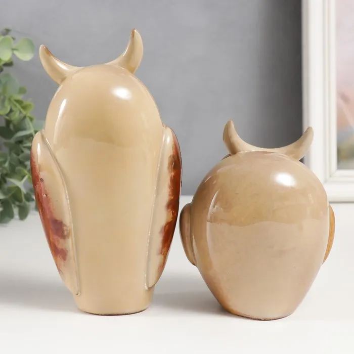 Набор фигурок керамика «Два филина», 2 шт., 11.5×9.5×7.5 см; 18×9×7 см