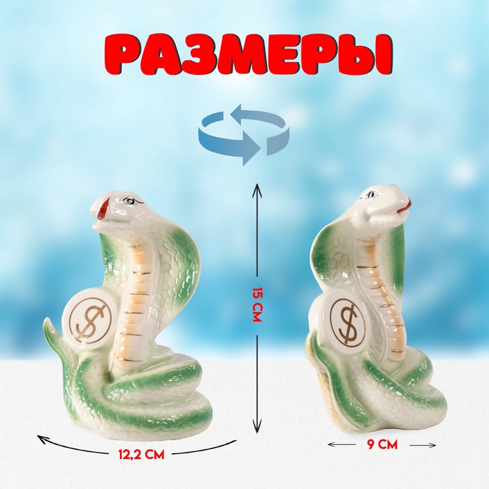 Набор фигурок керамика «Кобры с монетами», 2 шт., светло-зелёные с золотом, 9×12.2×15.5 см — Характеристики