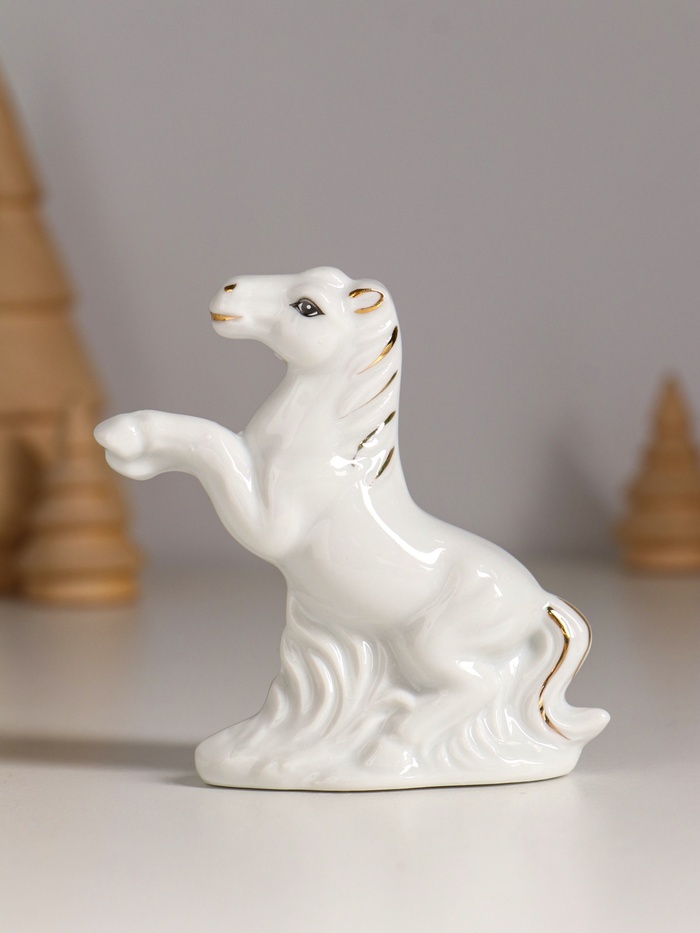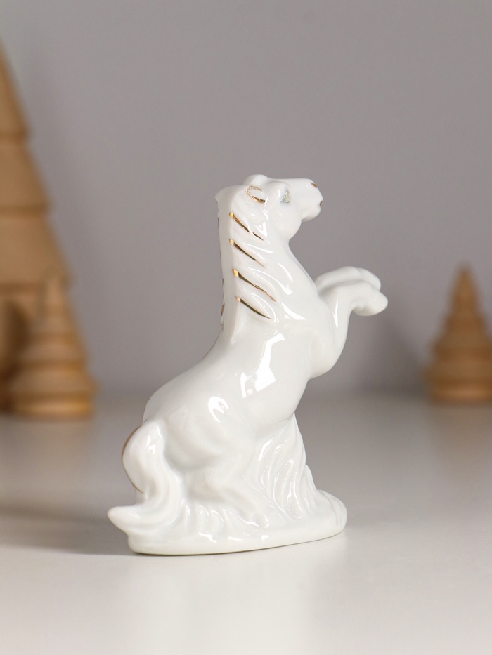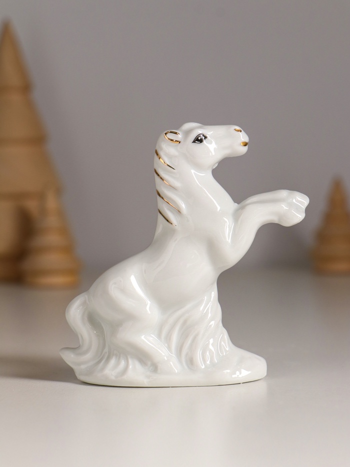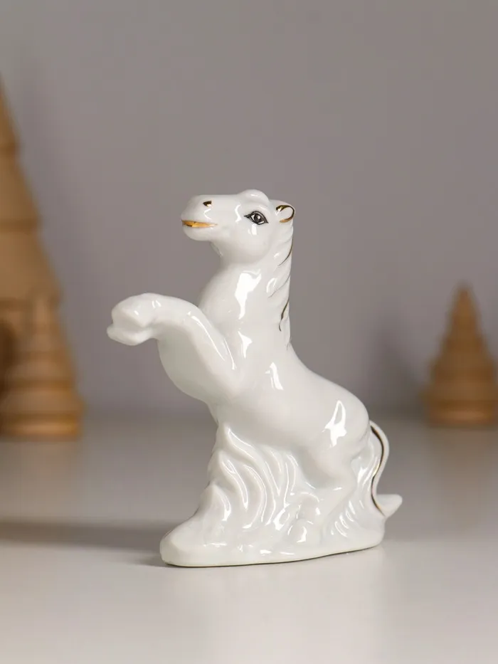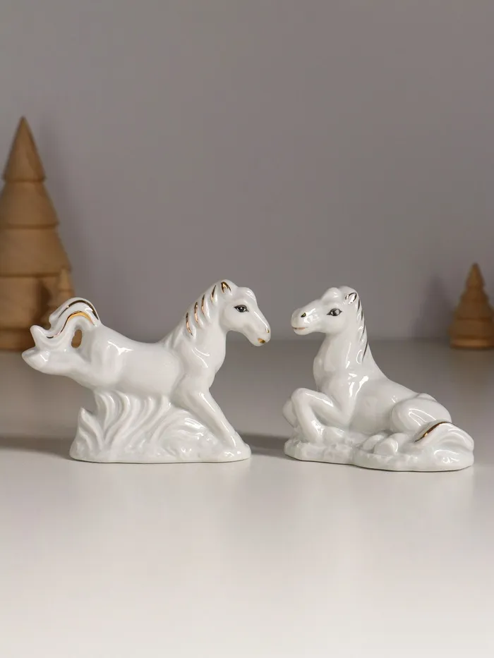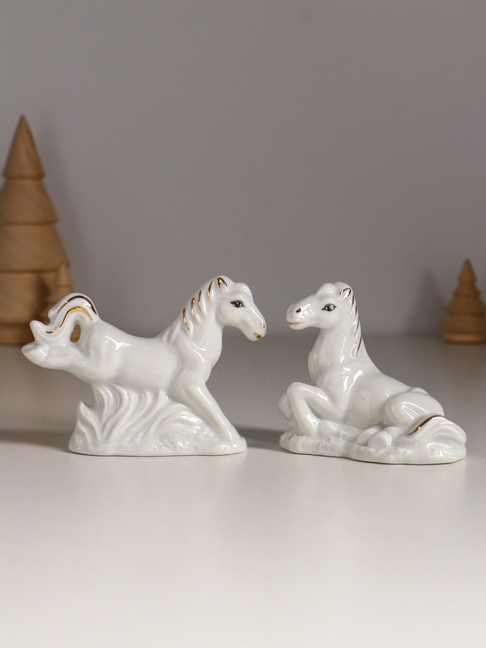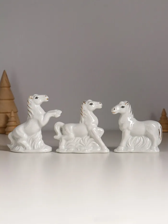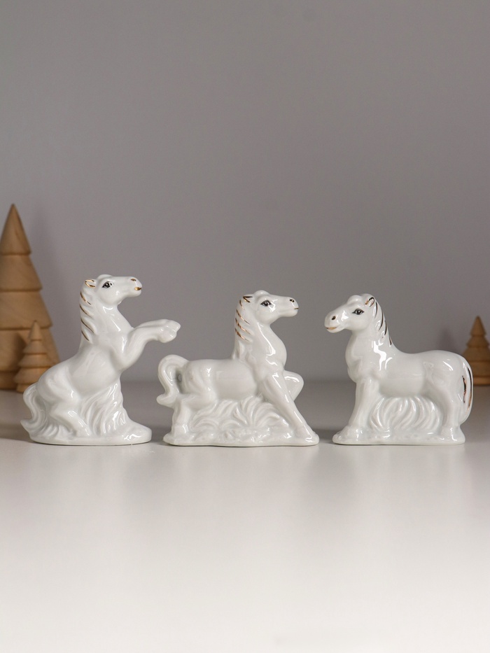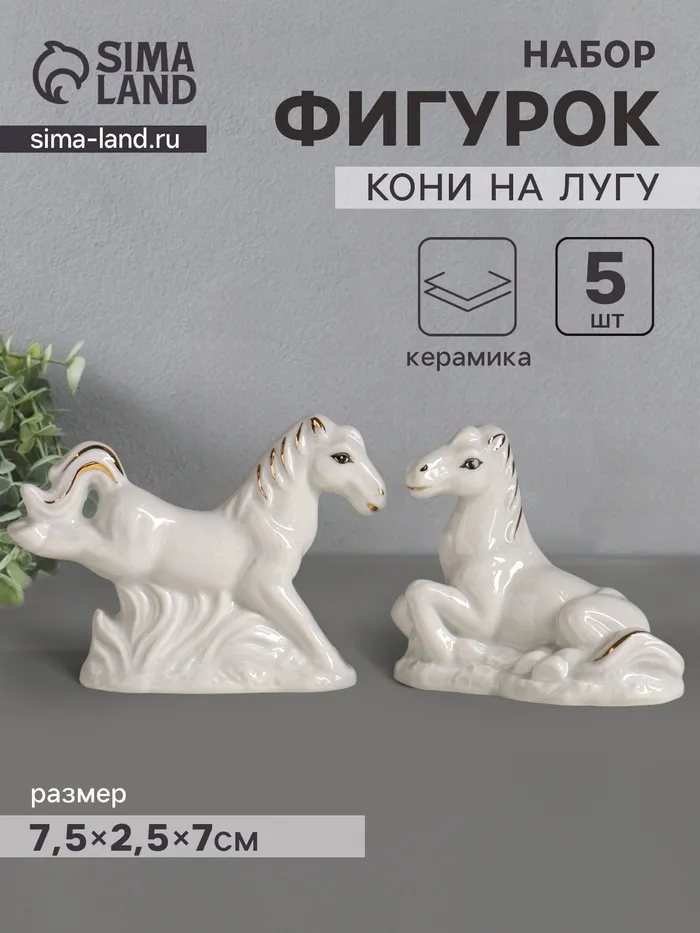 Набор фигурок керамика «Кони на лугу», белый с золотом, 5 шт., 7.5×2.5×7 см — Характеристики