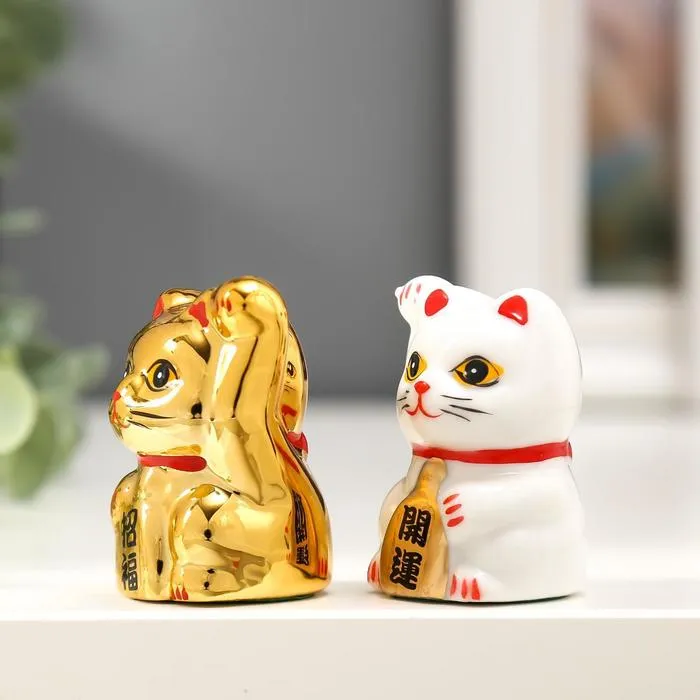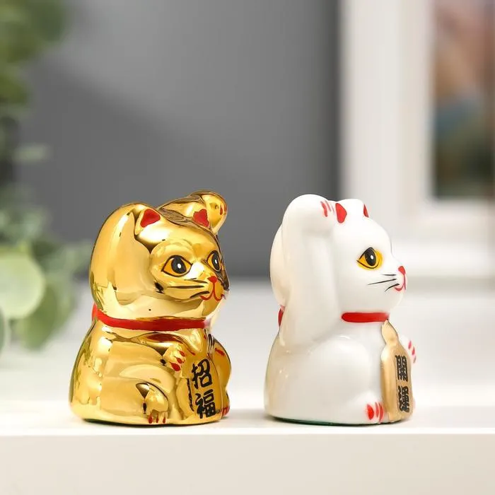 Набор фигурок керамика «Кот Манэки-нэко белый и золотой», 2 шт., 5×3.3×3 см — Характеристики
