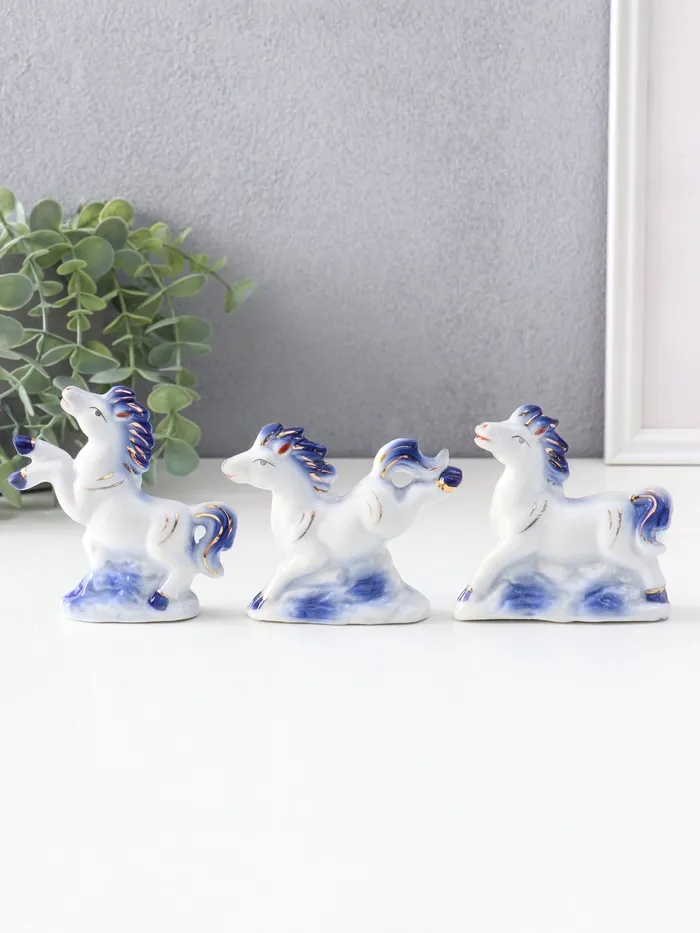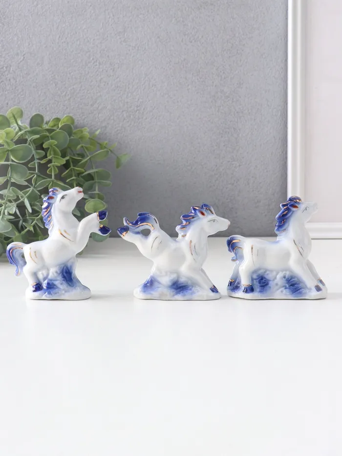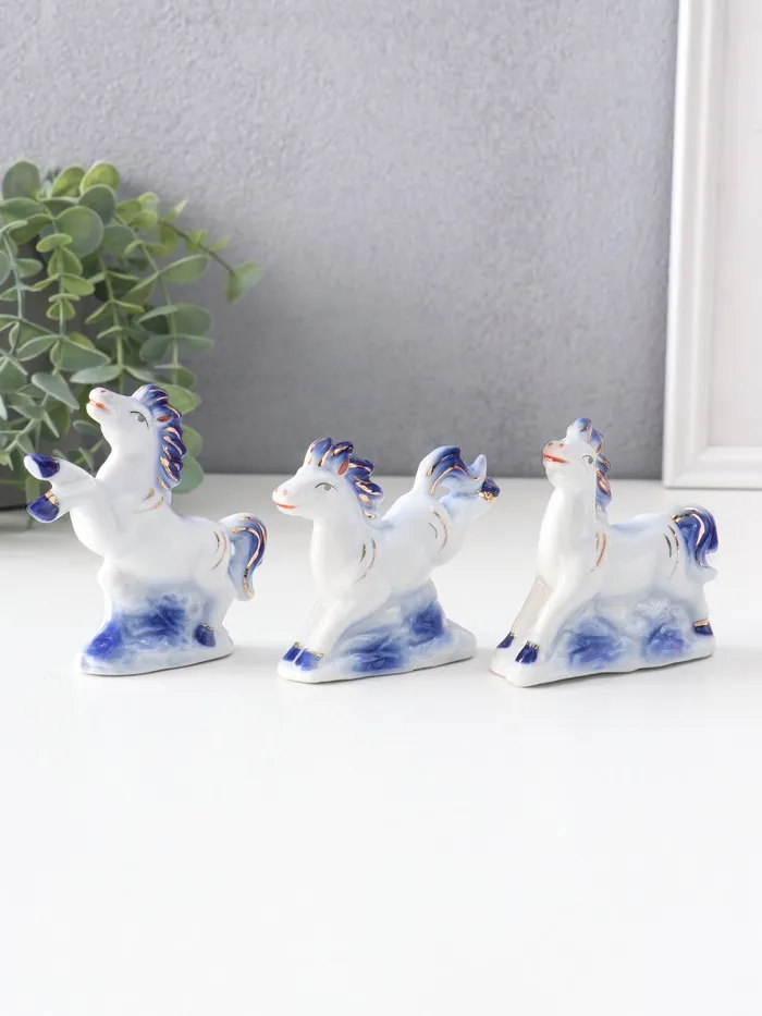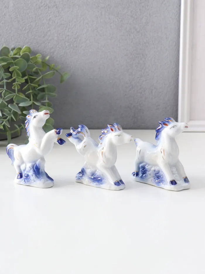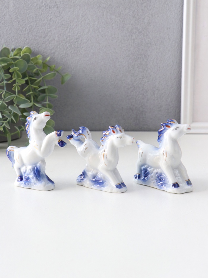 Набор фигурок керамика «Лошадки резвятся», сине-золотой, 3 шт., 7.4×2.7×7 см — Характеристики