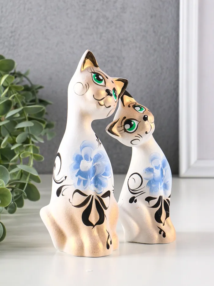 Набор фигурок керамика «Love Коты ушастые», 2 шт., в цветочек, 13×6×17 см — Характеристики