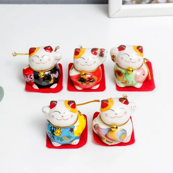 Набор фигурок керамика «Манэки-нэко с аксессуарами», 5 шт., 4.5×3.8×4.6 см — Характеристики