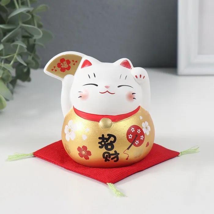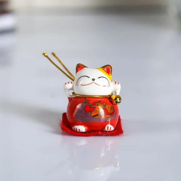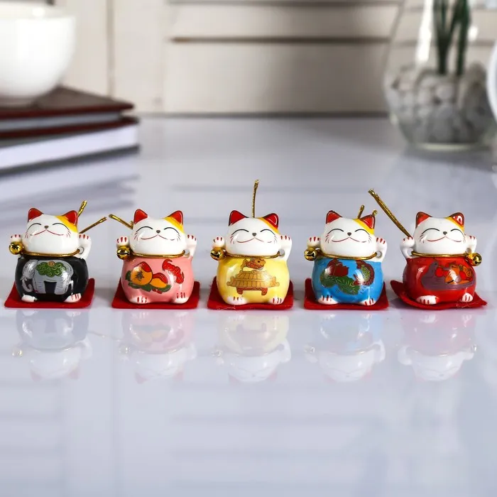 Набор фигурок керамика «Манэки-нэко с рисунком, на коврике», 5 шт., 4×4×3.5 см — Характеристики