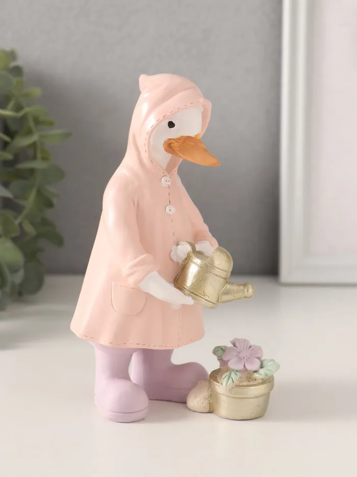 Фигурка полистоун «Утка в дождевике поливает цветок из лейки», 9.5×6×14.5 см