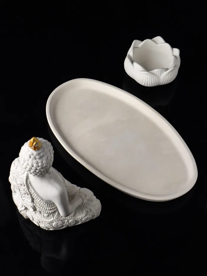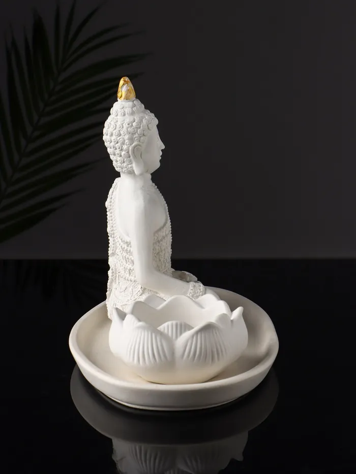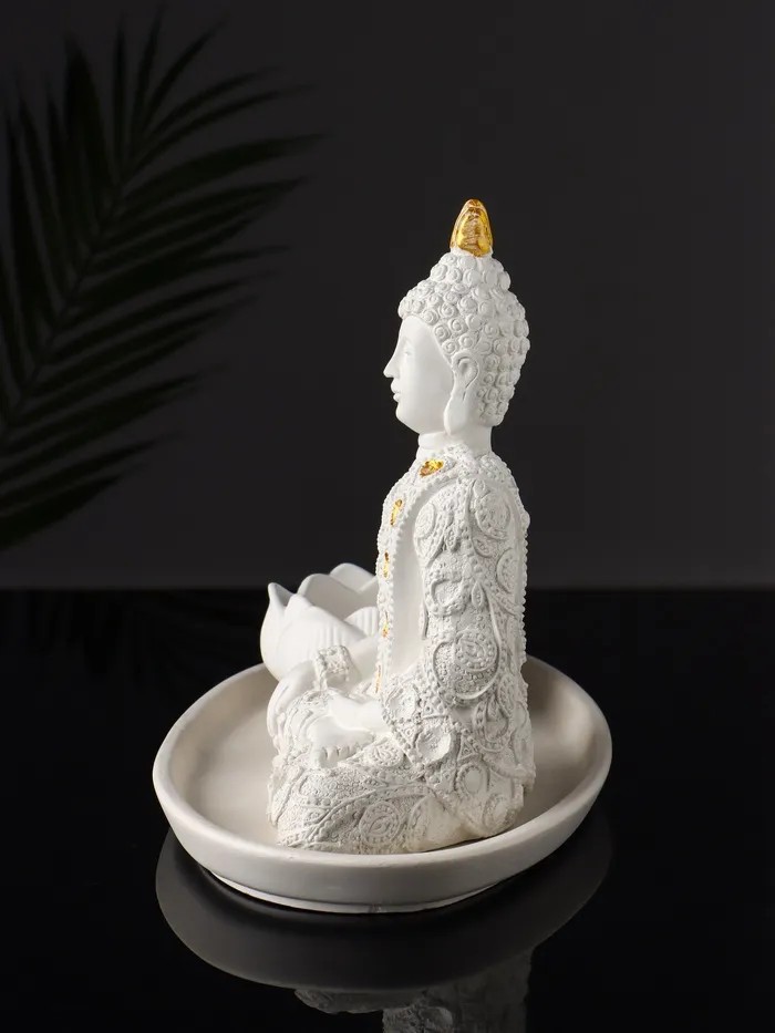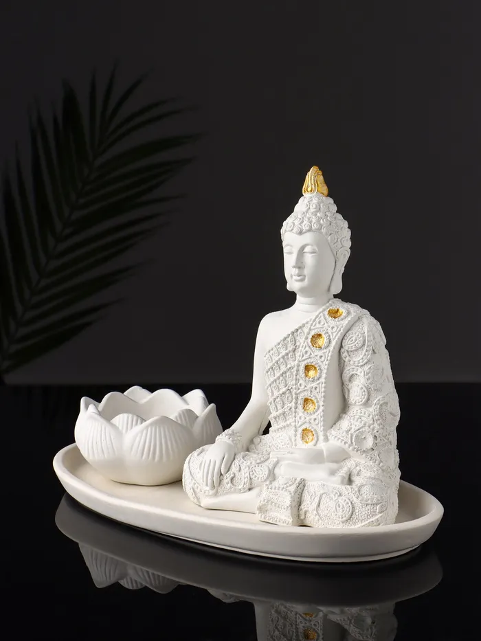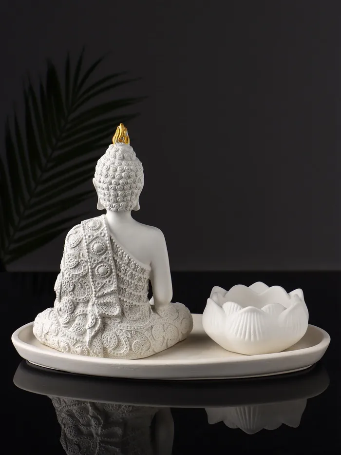 Набор фигурок (лотос-подсвечник и божество) на подносе «Буддийский», 20×10×20 см, белый — Характеристики
