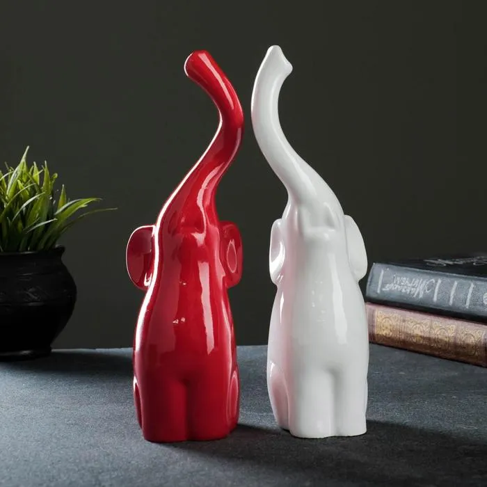 Набор фигурок «Пара слонов», белый и красный, 9×15×25 см — Характеристики