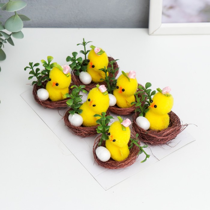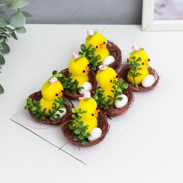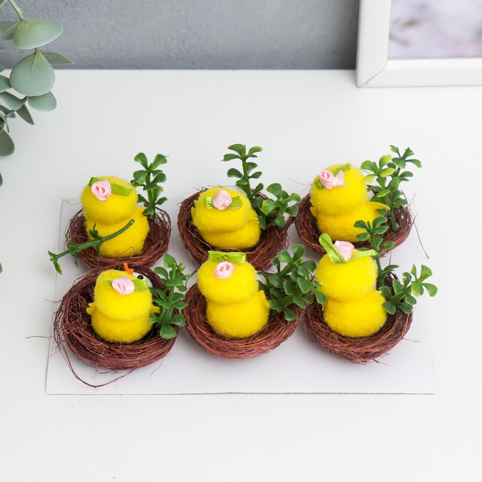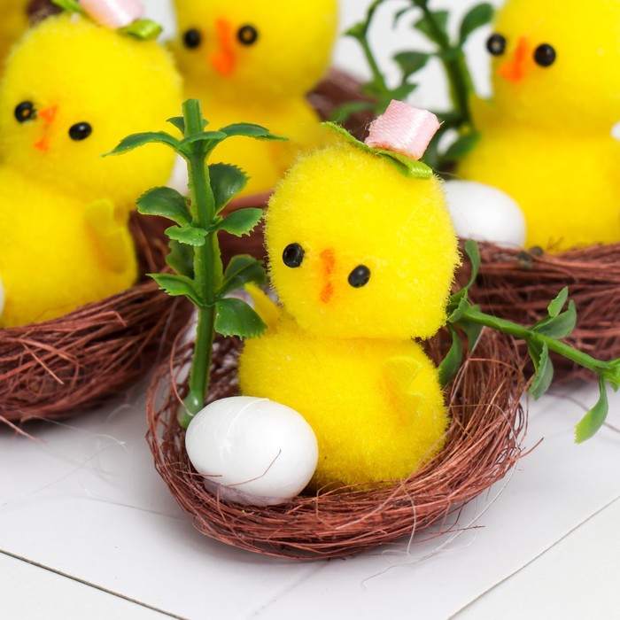 Представляем набор миниатюрных цыплят, которые станут ярким и трогательным украшением вашего дома в преддверии Пасхи или любого праздничного события. Каждая фигурка изображает очаровательного цыплёнка с нежной розой и декоративным яичком, уютно расположенным в гнезде с цветком. Жёлтый цвет и детализированный текстильный декор добавляют изделиям особую теплоту и весеннюю атмосферу.