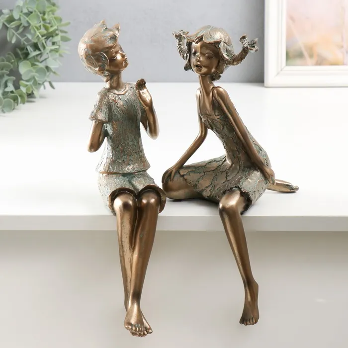 Набор фигурок полистоун «Дети — озорники», 2 шт., под бронзу, 14.5×16×32 см, 9×18×33 см — Характеристики