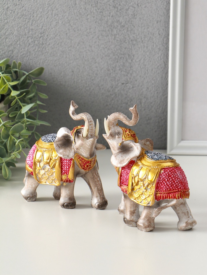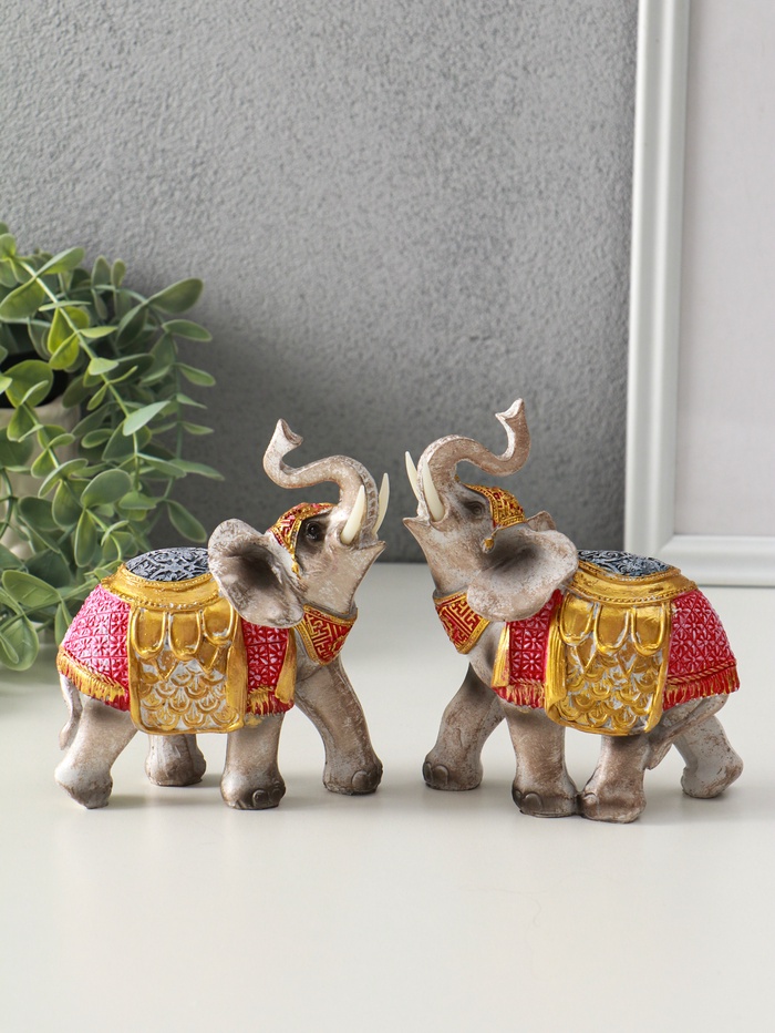 Набор фигурок полистоун «Два императорских слона в красно-золотой попоне», 2 шт., 5×11.5×13 см — Характеристики
