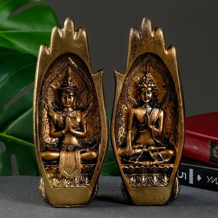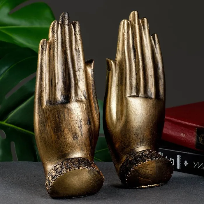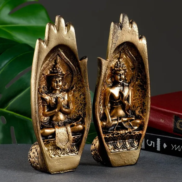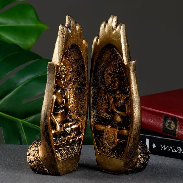 Набор фигурок полистоун «Две ладони с Буддой», держатель книг, бронза, 11×21×8 см — Характеристики