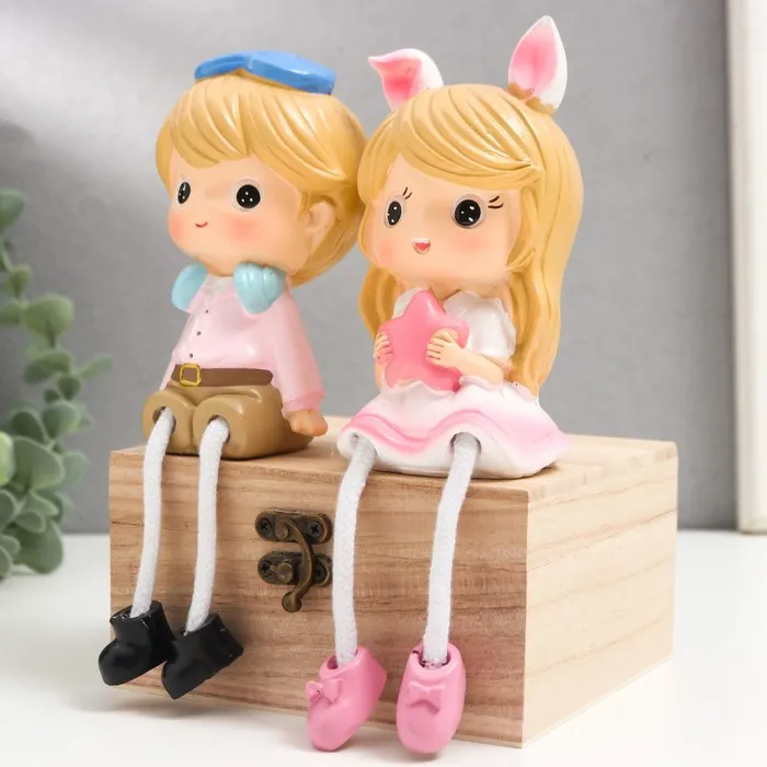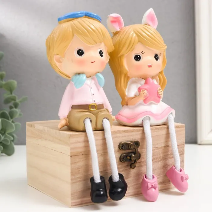 Представляем очаровательный набор из двух фигурок, которые оживят ваш интерьер и добавят ему нотку детской непосредственности и радости. В комплект входят мальчик в кепке и девочка с бантом, выполненные из высококачественного полистоуна. Разноцветное покрытие и аккуратная проработка деталей делают их яркими и запоминающимися. Размеры (6×7×17 см) и длинные ножки придают фигуркам изящество и устойчивость, позволяя разместить их на полке, столе или в качестве декора для детской комнаты.