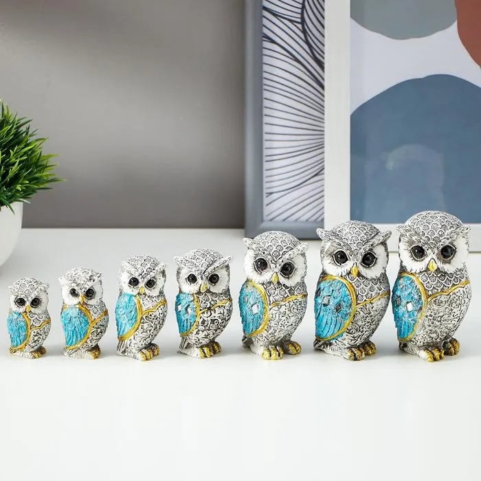 Набор фигурок полистоун «Семь серых филинов с синими крыльями», 7 шт. — Характеристики