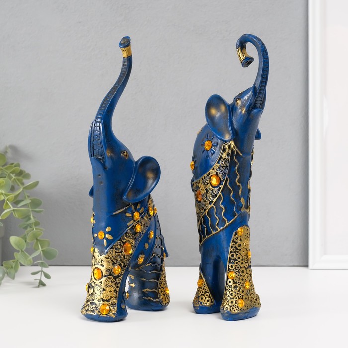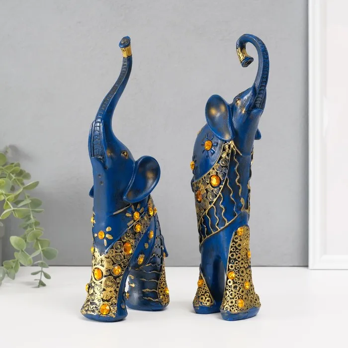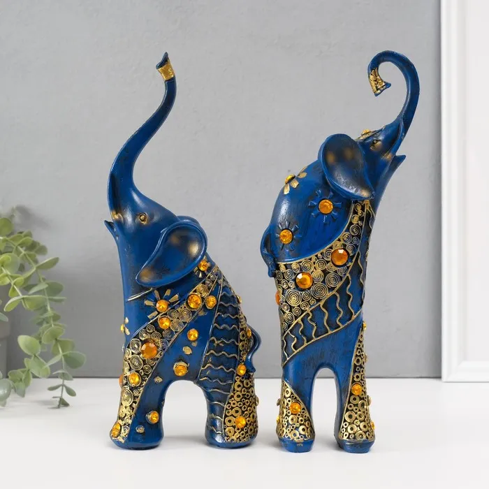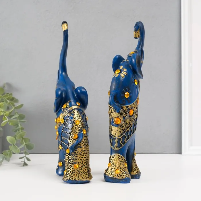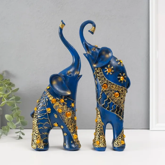 Набор фигурок полистоун «Синие слоны с оранжевыми стразами», 2 шт., 28.5×21×8.3 см — Характеристики