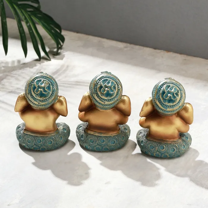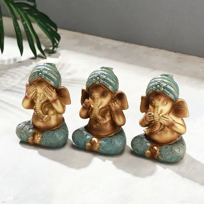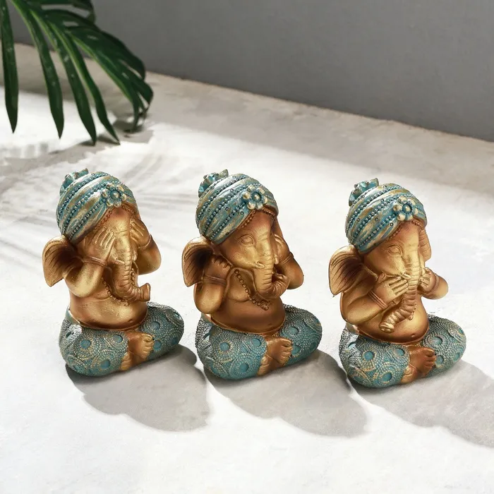 Представляем вам набор декоративных фигурок «Ганеша: не вижу, не слышу, не говорю», который станет стильным дополнением вашего интерьера. Эти три мудрые обезьянки символизируют принципы конфуцианского учения: не видеть зла, не слышать зла и не говорить зла. Набор включает три фигурки размером 6×7.5×10.5 см, выполненные из полистоуна, что обеспечивает их долговечность и прочность.
