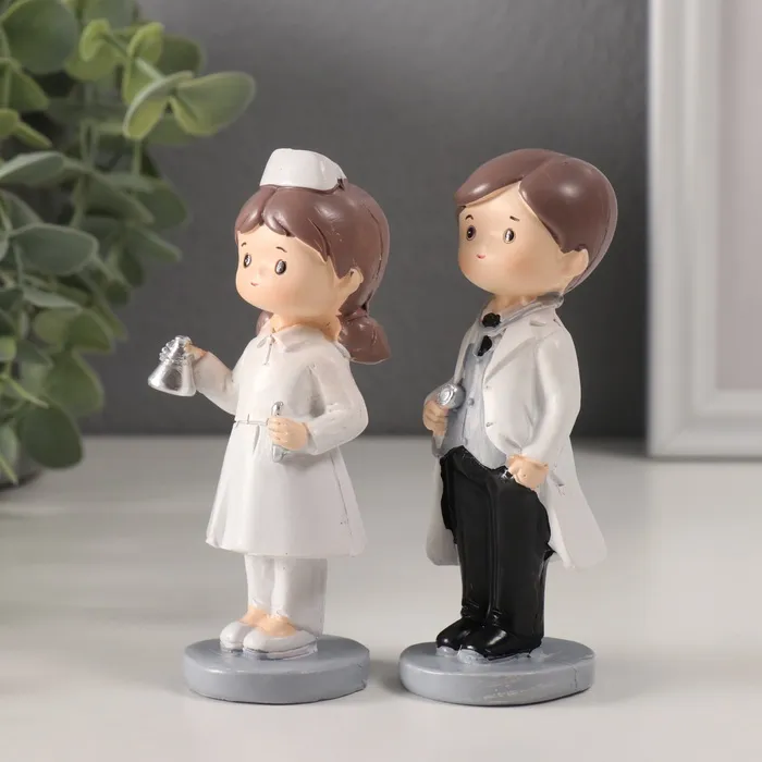 Набор фигурок полистоун «Врач с фонендоскопом и медсестра с мензуркой», 2 шт., 3.5×4×11 см — Характеристики