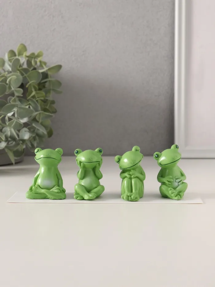 Представляем вашему вниманию очаровательный набор декоративных фигурок, которые наполнят ваш интерьер весельем и позитивом — это набор фигурок полистоун «Зелёные лягушата», 4 шт., 3×3.6×4.8 см. Эти милые лягушата из полистоуна станут отличным дополнением к вашему дому или офису, а также прекрасным подарком для друзей и родственников.