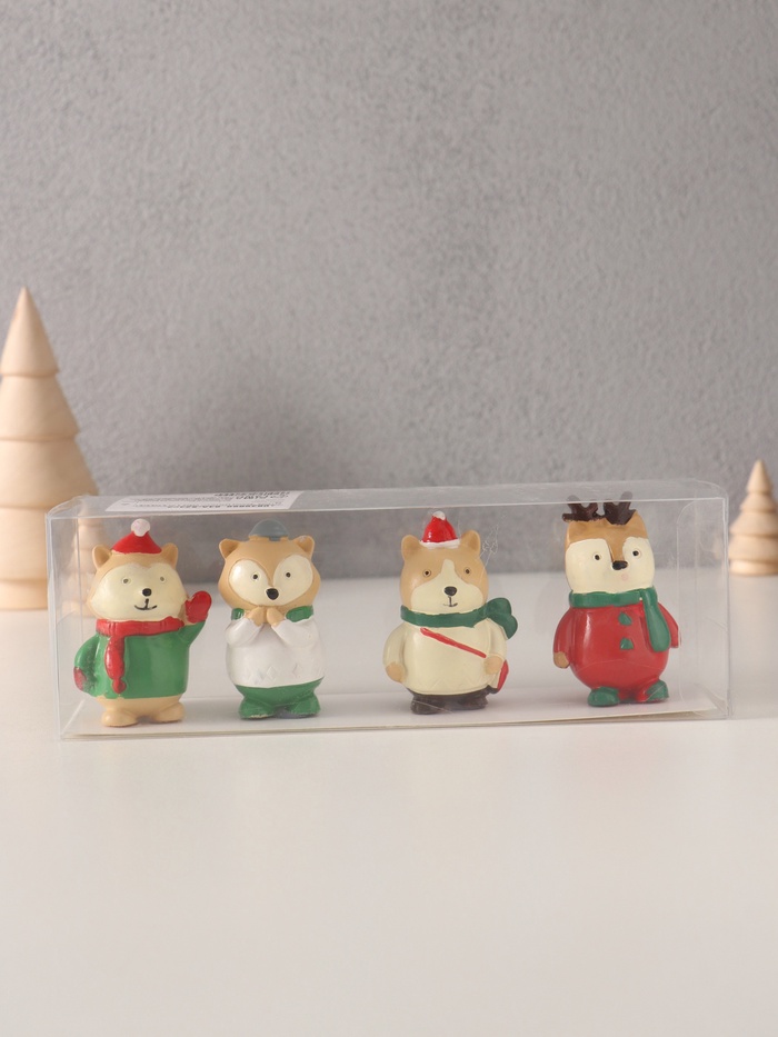 - В набор входят 4 фигурки, выполненные в виде очаровательных животных, символизирующих зимнюю природу.