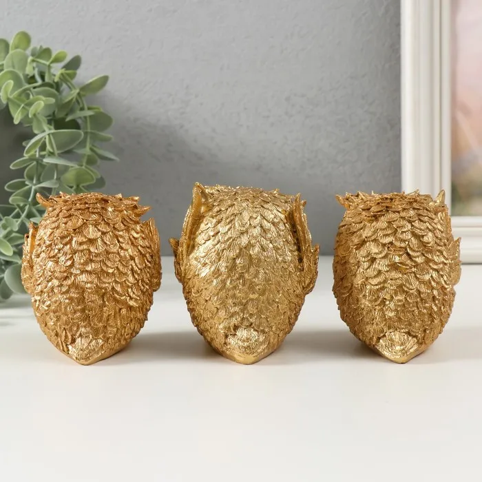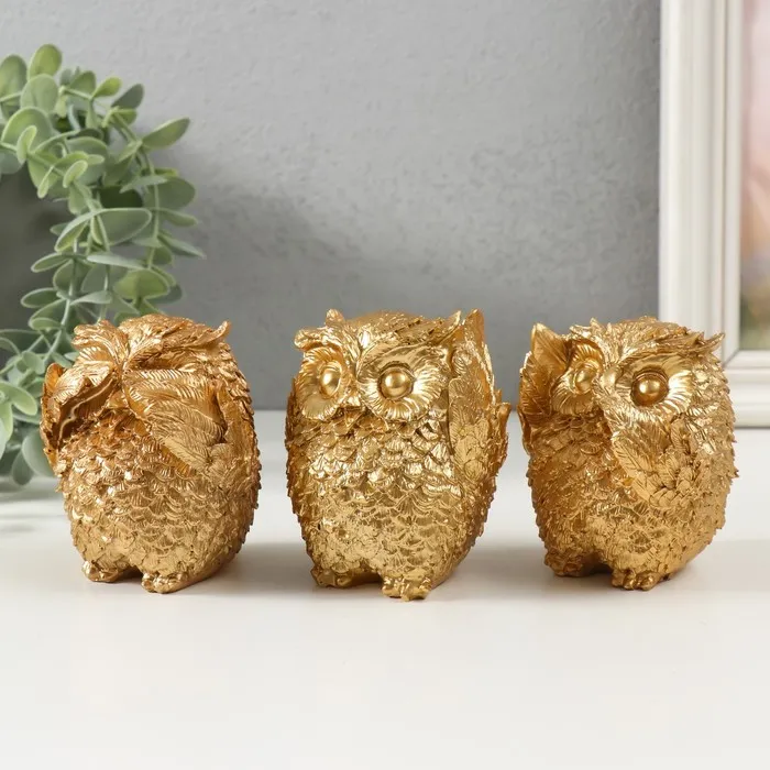 Набор фигурок полистоун «Золотые совушки», 3 шт., 7.5×7.5×9 см — Характеристики