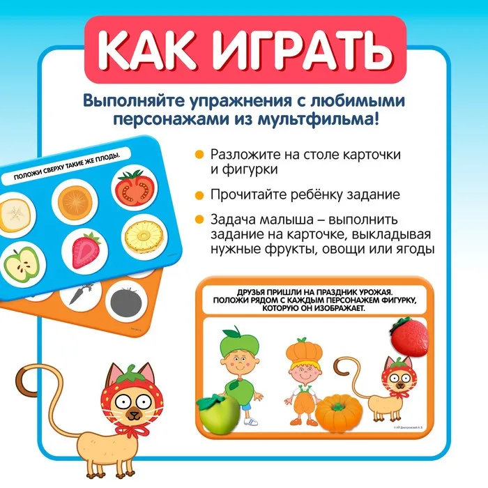 Набор фигурок с развивающими карточками «Фрукты, ягоды, овощи» — Характеристики