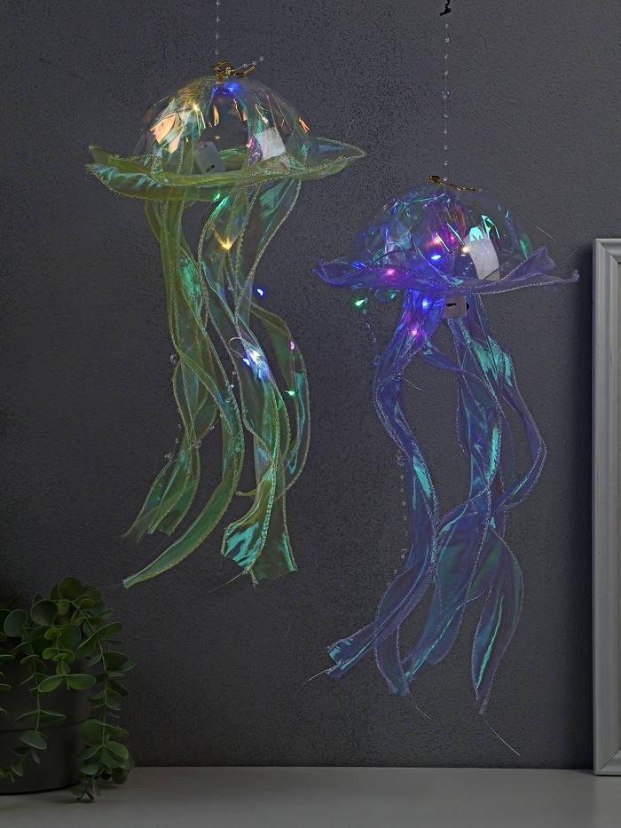 Набор фигурок светящихся «Медузы», 2 шт., подвесные, LED-ночник, RGB, 3хAG13, 20×20×50 см