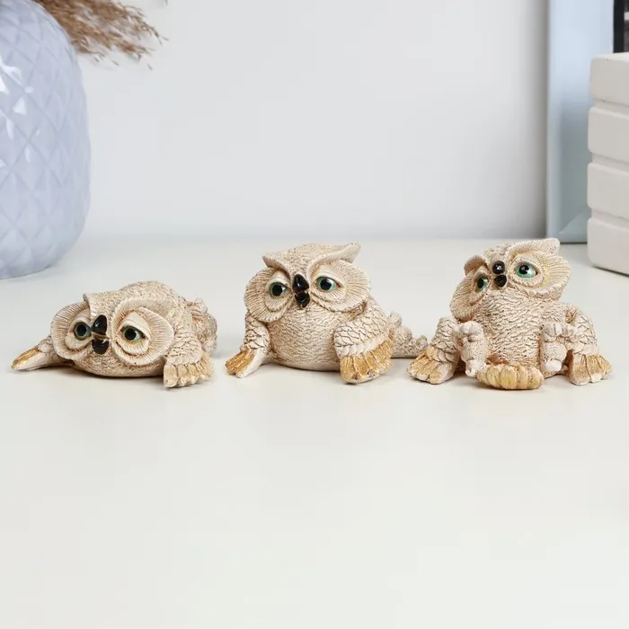 Набор фигурок «Три совы», 3 шт., бежевые, 5 см — Характеристики