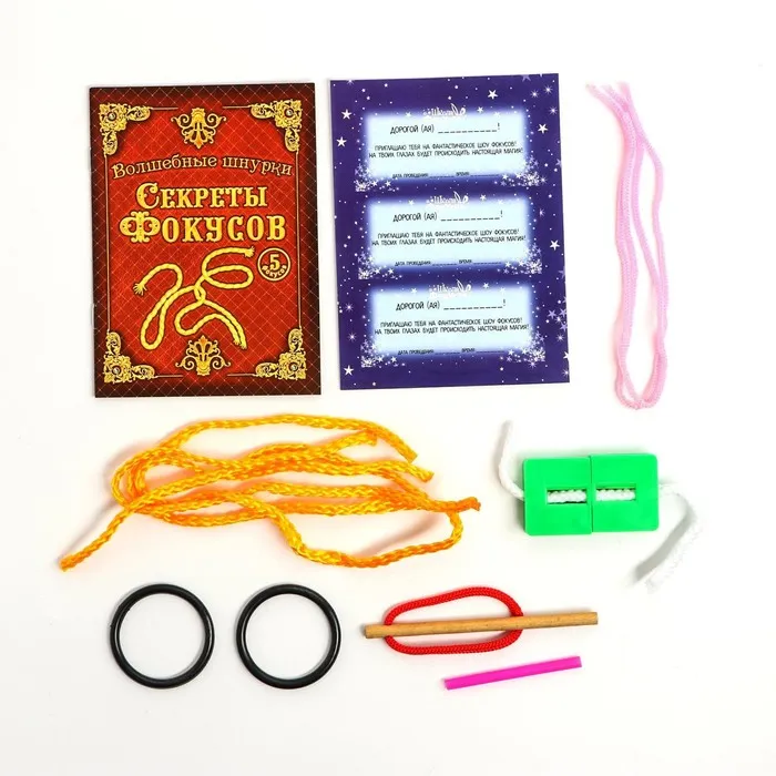 Удиви зрителей волшебными трюками! Набор фокусника «Волшебные шнурки» — это готовый реквизит для начинающего иллюзиониста. С ним ребёнок освоит первые магические номера, разовьёт ловкость рук и уверенность перед публикой. Идеально подходит для домашних выступлений.
