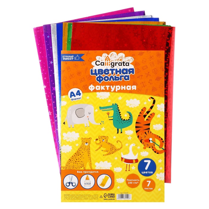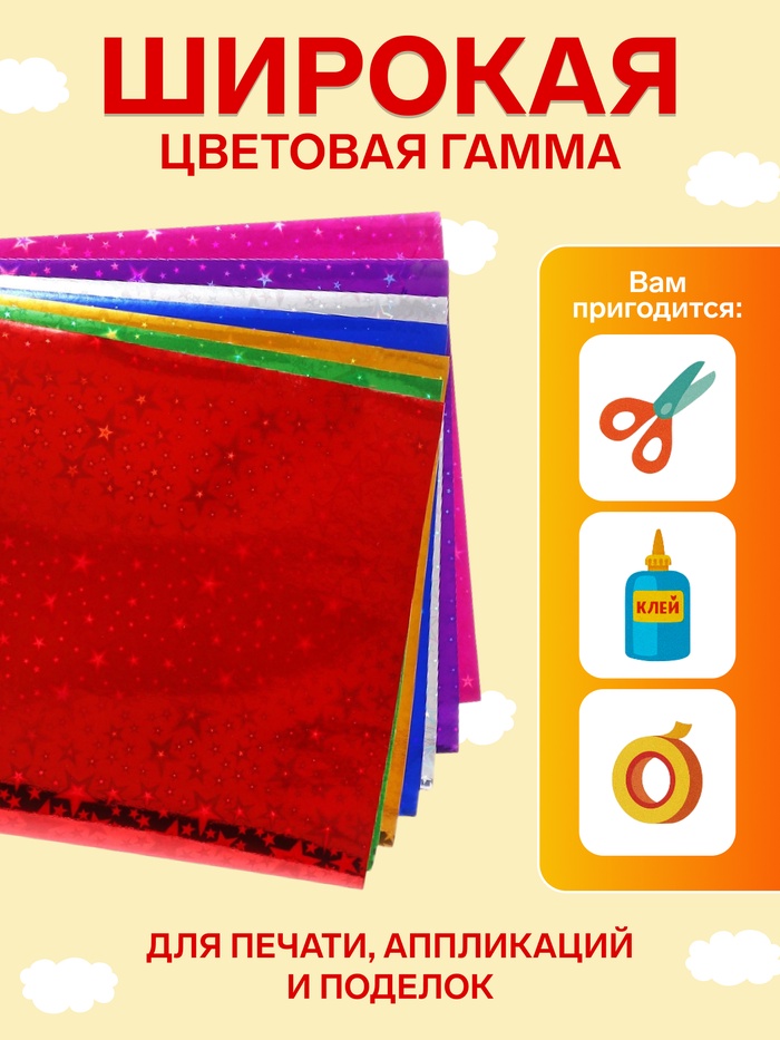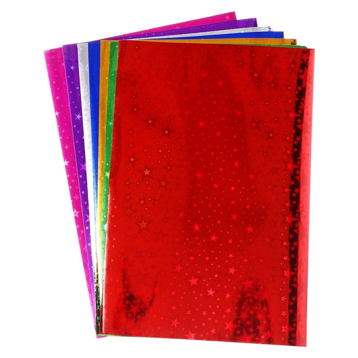 Набор фольги цветной формат А4, 7 листов, 7 цветов, ГОЛОГРАФИЧЕСКОЙ звезды, плотность 100 г/м² — Характеристики