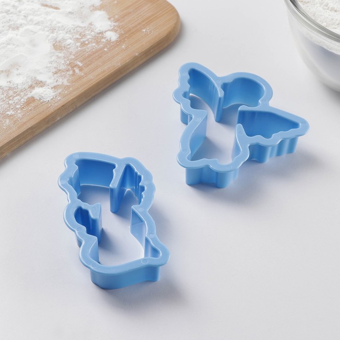 Набор форм для печенья Доляна «Ангелы», 2 шт, 14×13×2 см, цвет голубой — Характеристики