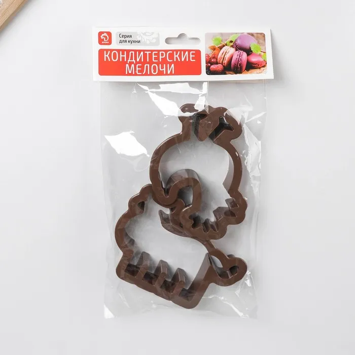 Набор форм для печенья Доляна «Бычок и петушок», 2 шт, 14×13×2 см, цвет коричневый — Характеристики