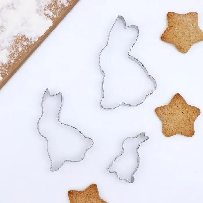 Набор форм для печенья Доляна «Кролик», 3 шт., серебристый