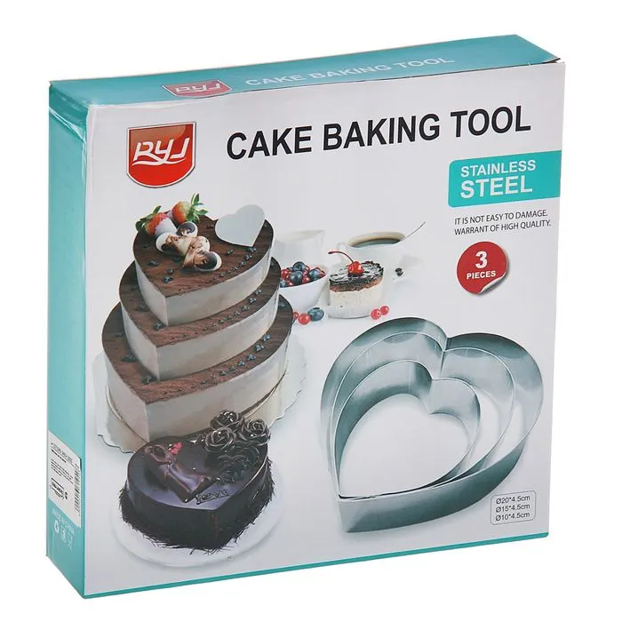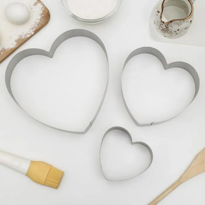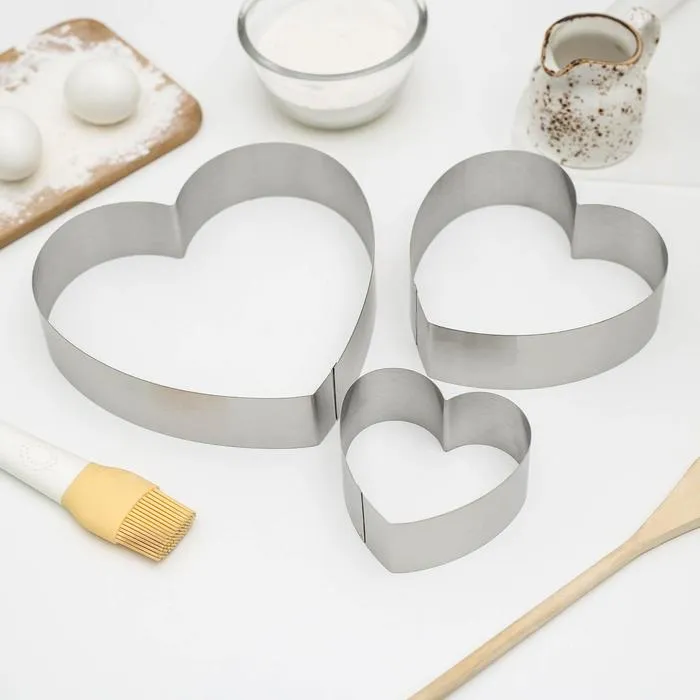 Набор форм для выкладки и выпечки KONFINETTA «Сердце», 3 шт, 20×20×4,5 см, 15,5×15×4,5 см, 10×10×4,5 см, цвет серебристый — Характеристики