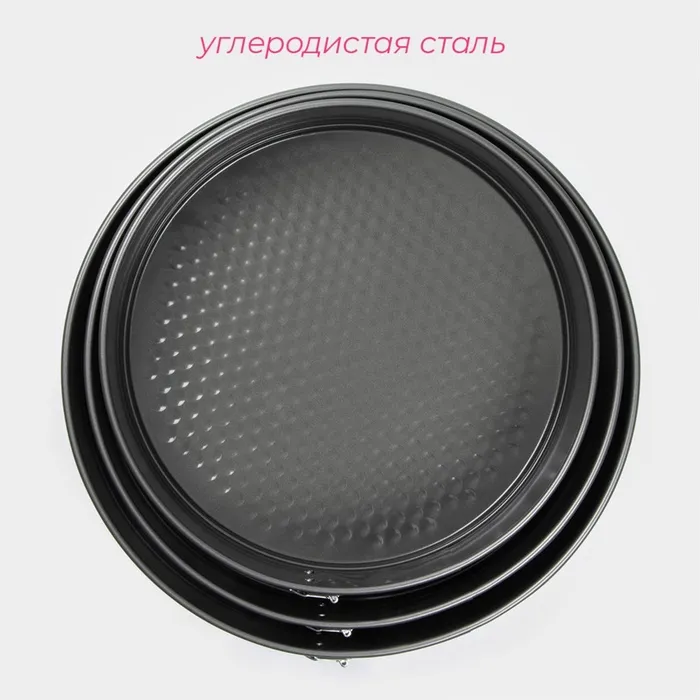Набор форм для выпечки Доляна «Элин. Круг», 3 предмета: d=24/26/28 см, съёмное дно, антипригарное покрытие, чёрный — Характеристики