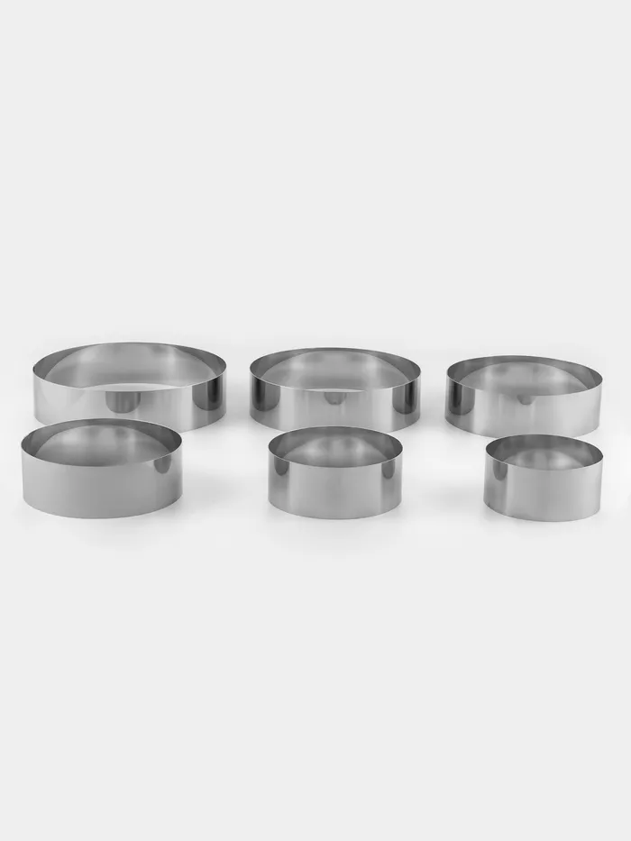 Набор форм для выпечки и выкладки TAS-PROM «Круг», d=10/12/14/16/18/20 см, h=5 см, нержавеющая сталь, 6 шт. — Характеристики