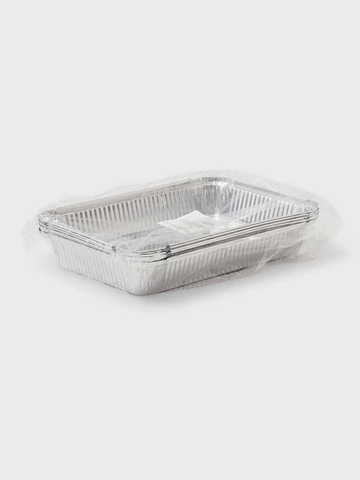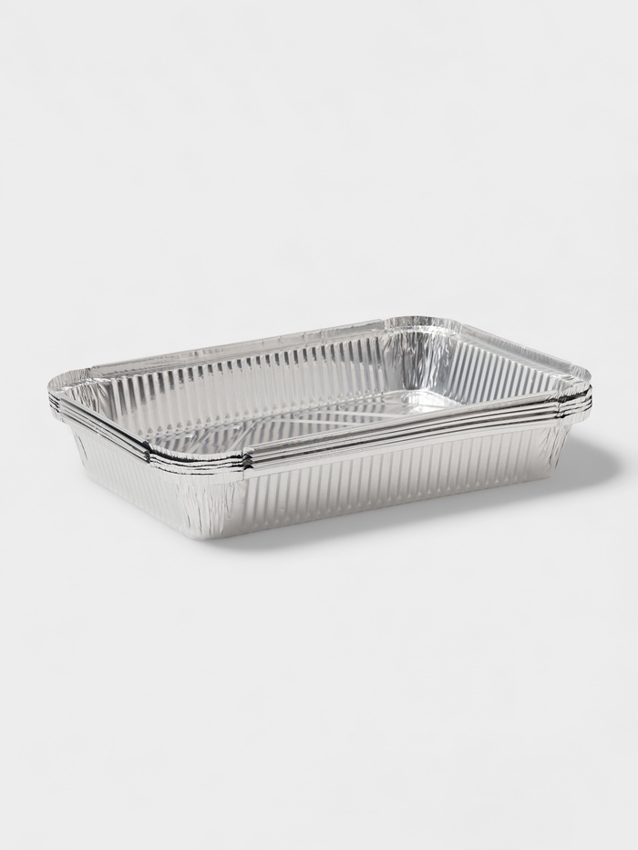 Набор состоит из пяти форм размером 31×21×4,5 см, что делает их удобными для приготовления как маленьких, так и больших блюд. Формы изготовлены из прочной фольги, которая не деформируется при нагревании и не вступает в реакцию с пищей.