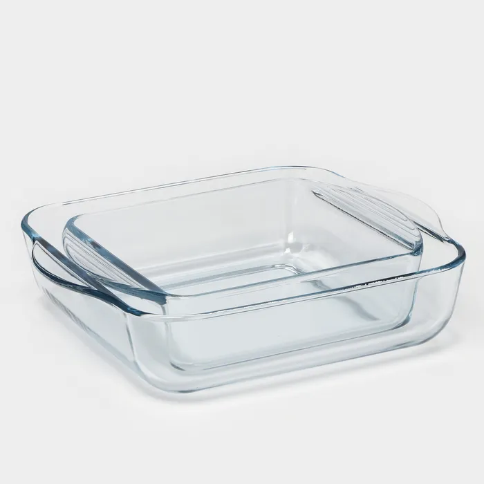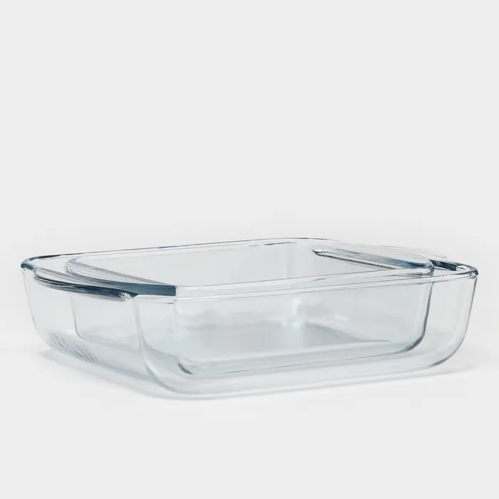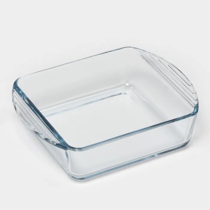 Форма выполнена из жаропрочного стекла. Она пригодится для приготовления блюд из мяса, овощей и теста в духовке и СВЧ-печи.