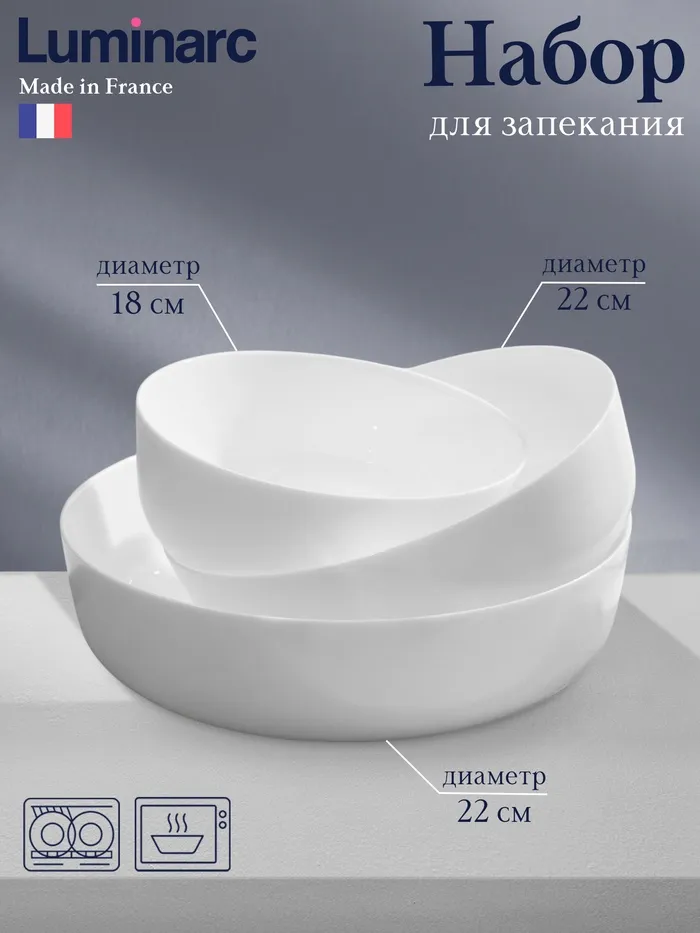 Набор форм для запекания Luminarc Diwali, 3 шт.: 1.3 л, 2 л, 2.8 л, стеклокерамика, белый — Характеристики