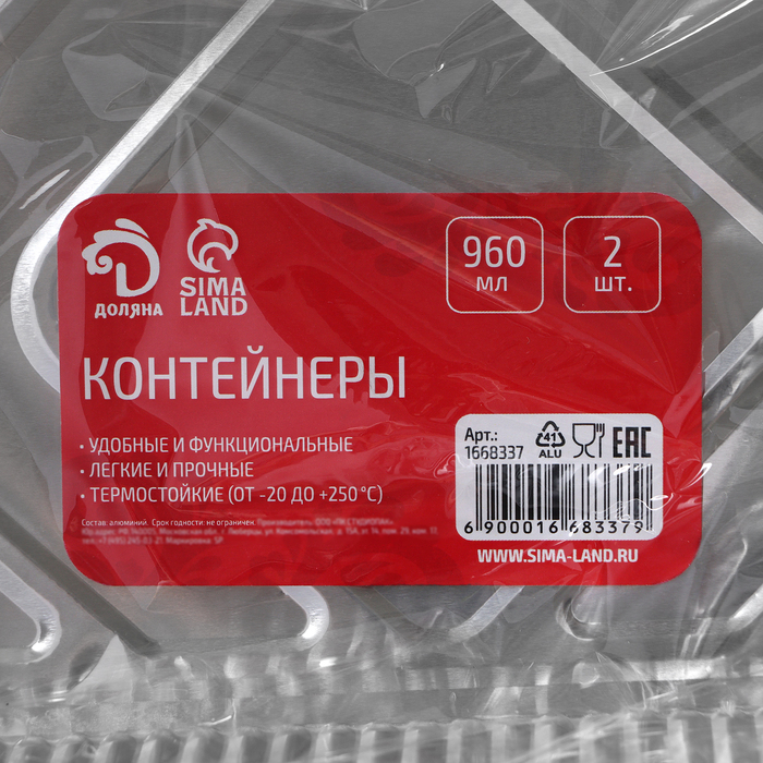 Набор форм из фольги для запекания и выпечки Доляна, 960 мл, 21.5×14.6×5 см, 2 шт. — Характеристики
