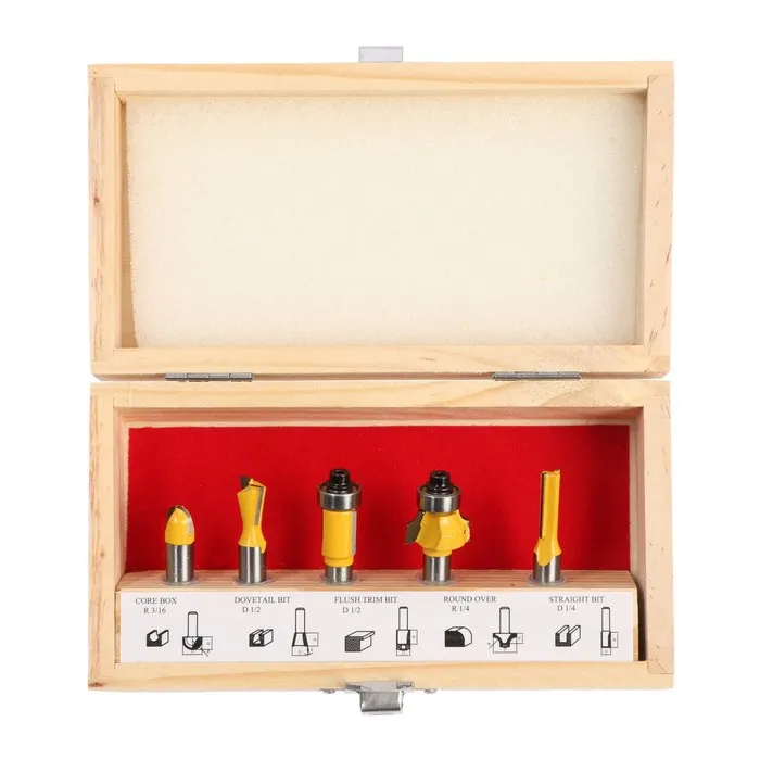 Набор фрез по дереву ТУНДРА, деревянный ящик, хвостовик 8 мм, 5 шт. — Характеристики