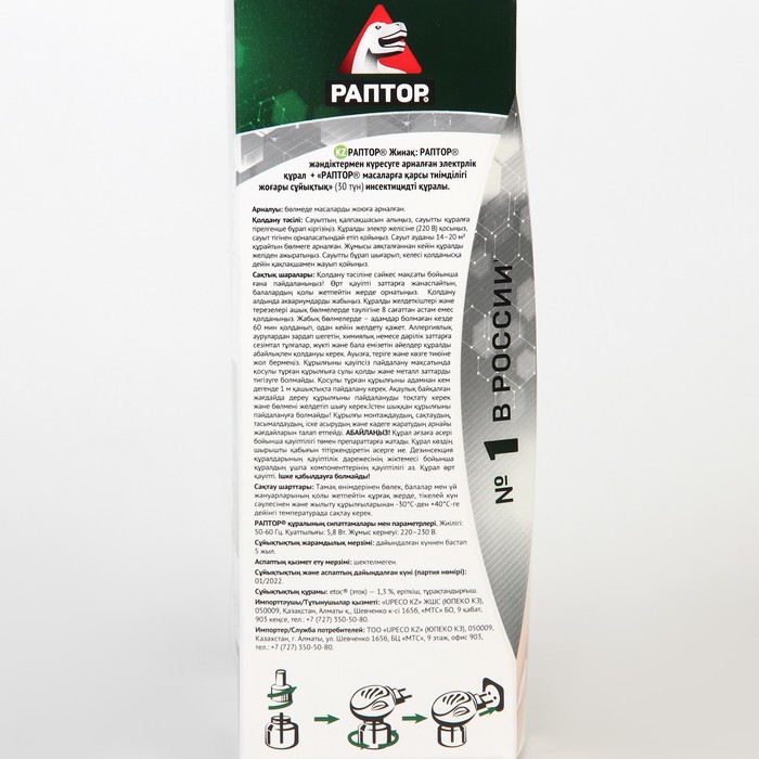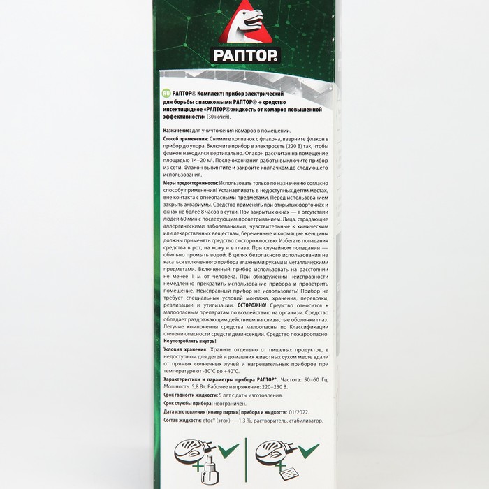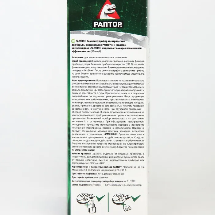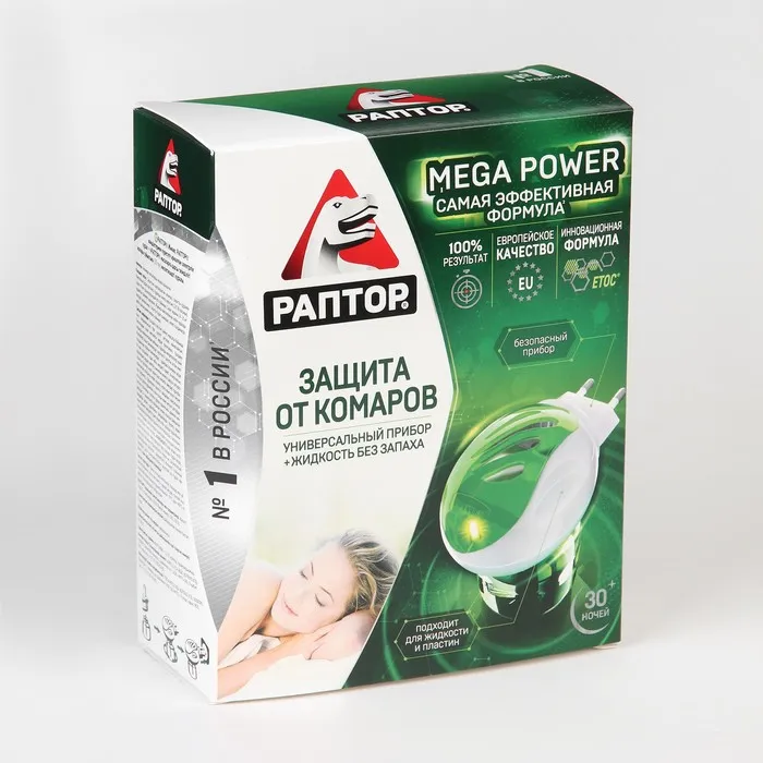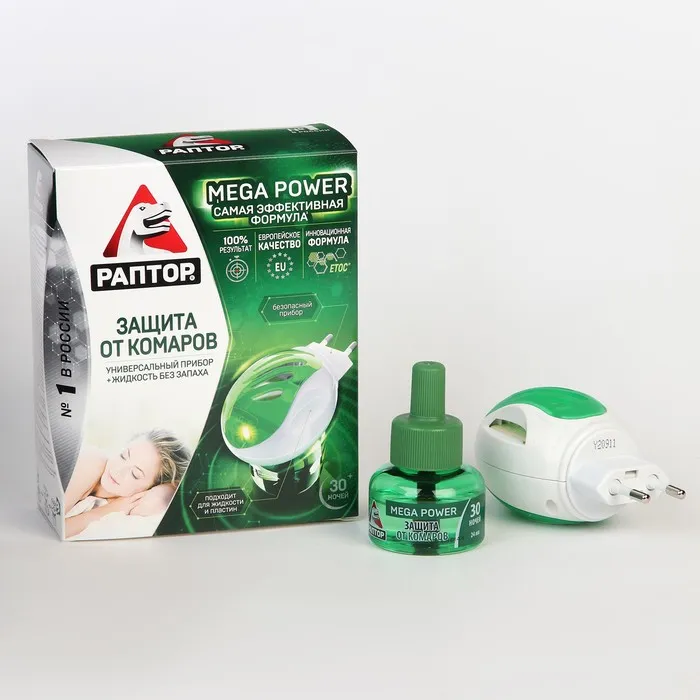 Набор фумигатор + жидкость от комаров, РАПТОР, повышенная эффективность, 30 ночей — Характеристики