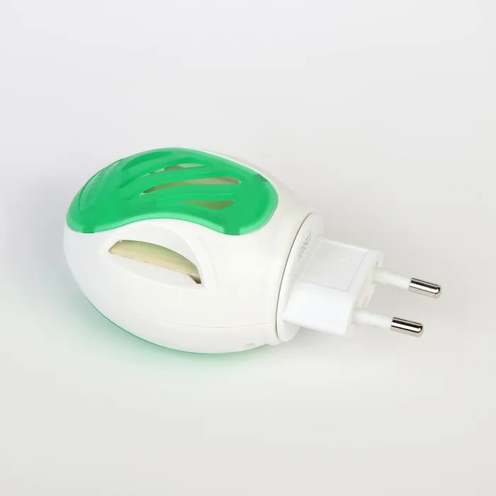 ОписаниеСредство применять в хорошо проветриваемых помещениях или при открытых форточках и окнах не более 8 часов при непрерывной работе прибора; в закрытых помещениях не более 2 часов в отсутствие людей с последующим проветриванием. Не касаться включенного прибора влажными руками и металлическими предметами. Включать прибор на расстоянии не менее 1 м от человека. Хранить отдельно от пищевых продуктов в месте, недоступном для детей и домашних животных. Лица, страдающие аллергическими заболеваниями, должны применять средство с осторожностью. При появлении дискомфортных ощущений прекратить использование средства и проветрить помещение. Закрыть аквариум на время работы прибора. ОСТОРОЖНО! Средство относится к малоопасным препаратам по воздействию на организм. Средство обладает раздражающим действием на слизистые оболочки глаз. Средство пожароопасно.Состав жидкости: эток (праллетрин) - 0,9%; отдушка; стабилизатор; растворители.ИнструкцияАккуратно снимите колпачок с флакона, вставьте стержень в прибор и плотно прикрутите. Или аккуратно извлеките пластину из упаковки и вставьте в нагревательный прибор.Включите прибор (в местах, где он не будет закрыт мебелью) в электросеть (220 В).Активное вещество начинает действовать через 10-15 минут после включения.После окончания работы выключите прибор из сети. Жидкость можно использовать до полного испарения из флакона.