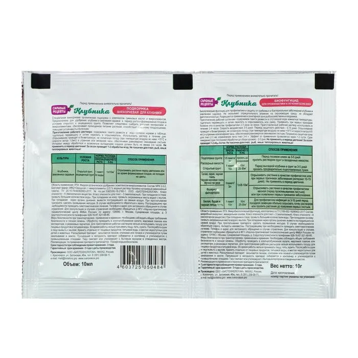Биофунгицид и подкормка 2 в 1 «Садовые рецепты» Клубника — набор из двух препаратов, включающий в себя: