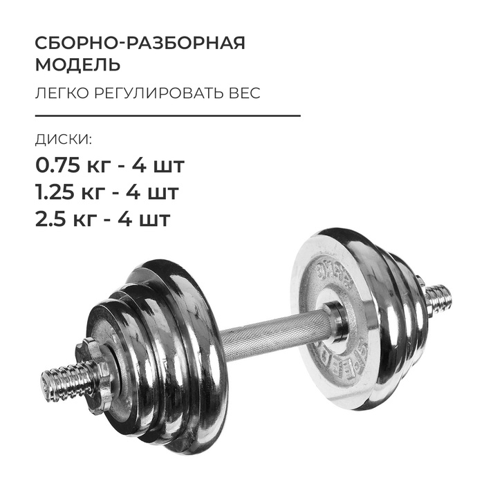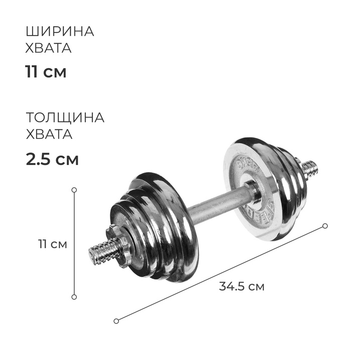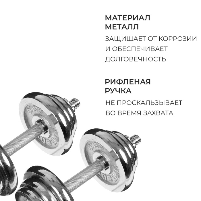 Набор гантелей сборных ONLYTOP 20 кг: 10 кг х 2 шт. — Характеристики