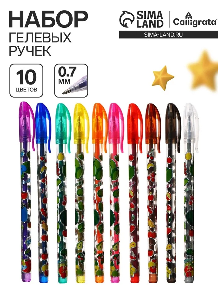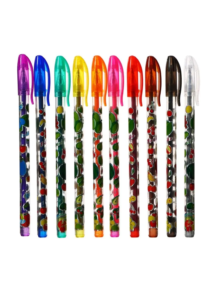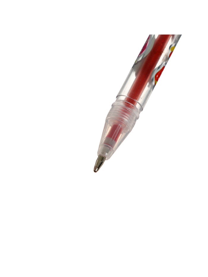 Ручка имеет круглый прозрачный корпус с рисункомСменный стержень длиной 135 мм со стандартным наконечником позволит использовать ручку максимально долго.Диаметр пишущего узла, равный 0,5 мм, создает линию письма, равную 0,35 мм.Набор включает гелевые ручки из 10 различных цветов, металлик .Придайте с помощью ярких чернил своему письму уникальность и отличное настроение!