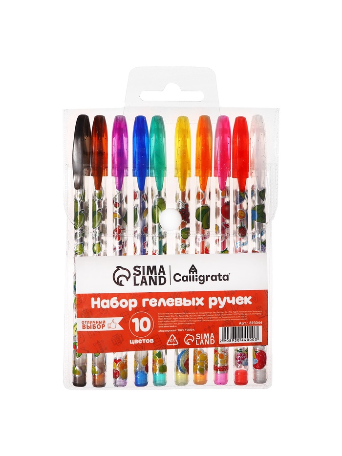 Набор гелевых ручек, 10 цветов, металлик, корпус с рисунком, в блистере на кнопке — Характеристики