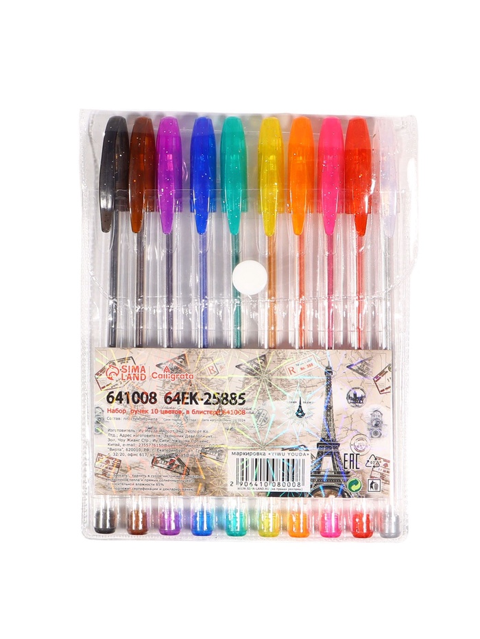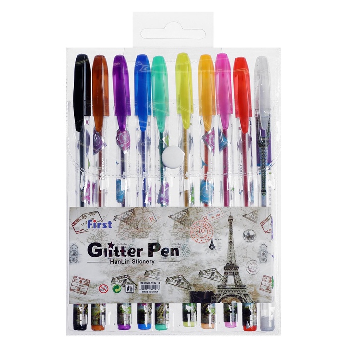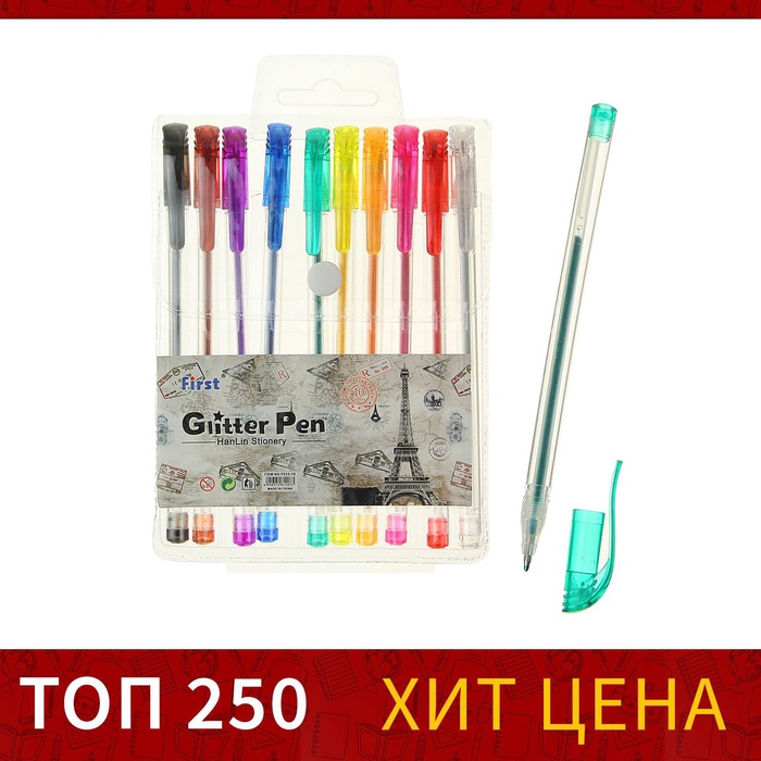 Набор гелевых ручек 10 цветов, металлик, с блестками — Характеристики