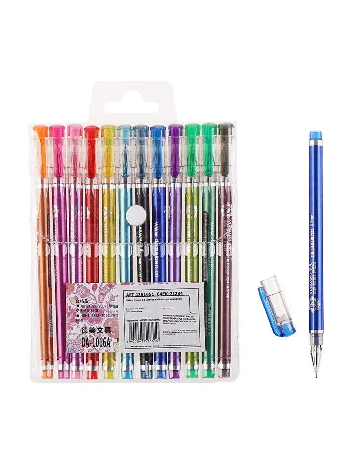 Набор гелевых ручек 12 цветов корпус металлик в блистере на кнопке — Характеристики