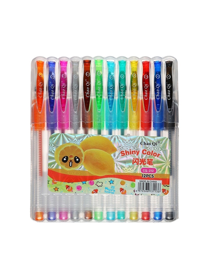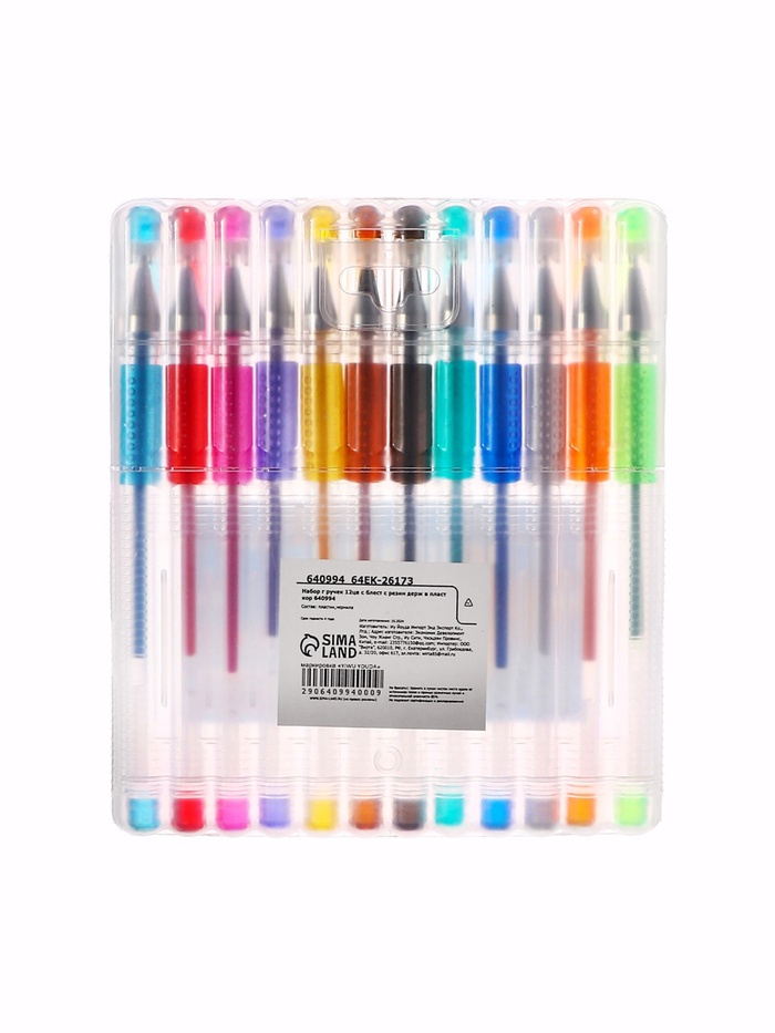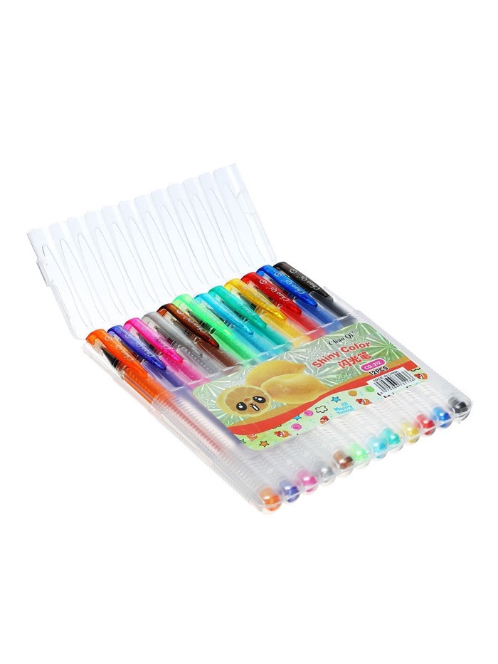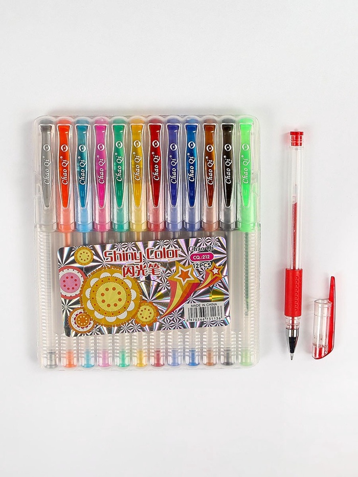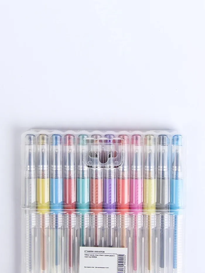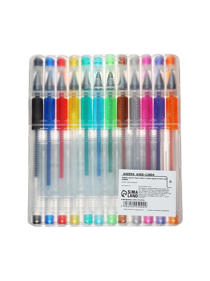 Набор гелевых ручек, 12 цветов, с блестками, с резиновым держателем, в пластиковой коробке — Характеристики